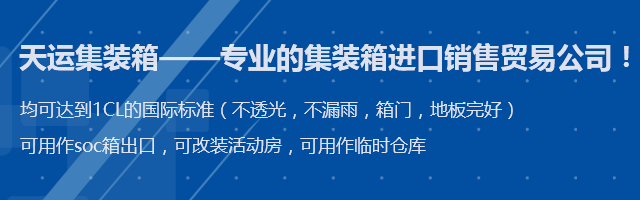 符合國際:箱標(biāo)準(zhǔn),可用作倉庫和海運及鐵路運輸?shù)鹊龋≌\信經(jīng)營、數(shù)量充足、價格優(yōu)惠。公司在中國各大港口(如青島、天津、上海、深圳等均有大批量庫存),在中國香港、韓國、新加坡、東南亞、非洲、歐洲等形成不斷完善的貿(mào)易網(wǎng)絡(luò)。